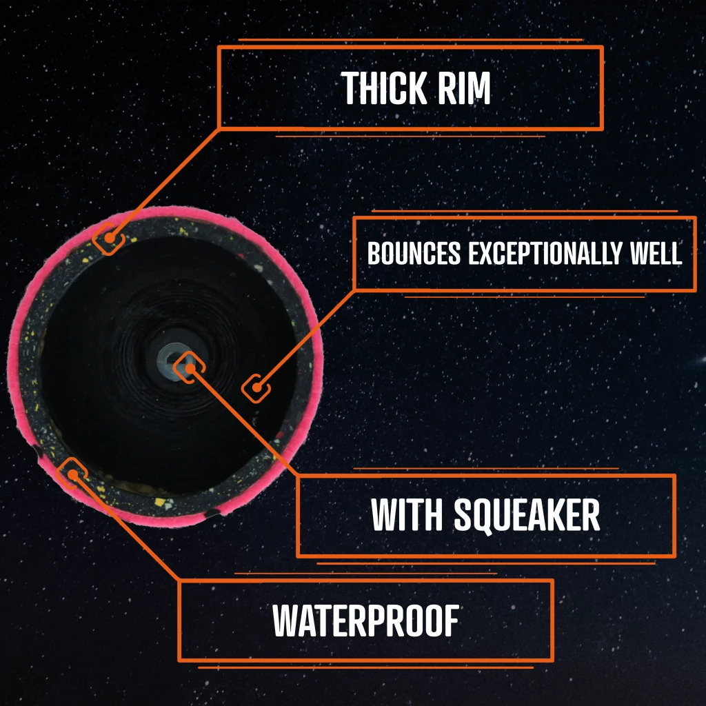 This tennis ball is not just any tennis ball. In fact, the ball has an extra-thick rubber rim, making it practically indestructible. The natural felt on the outside is safe for the dog’s teeth, as it does not cause scratches. The ball is completely sealed, so the squeaker is protected from water and dirt to last longer.